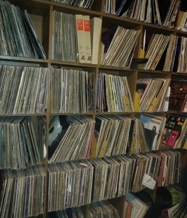 Extensive vinyl collection with turntables and MPCs